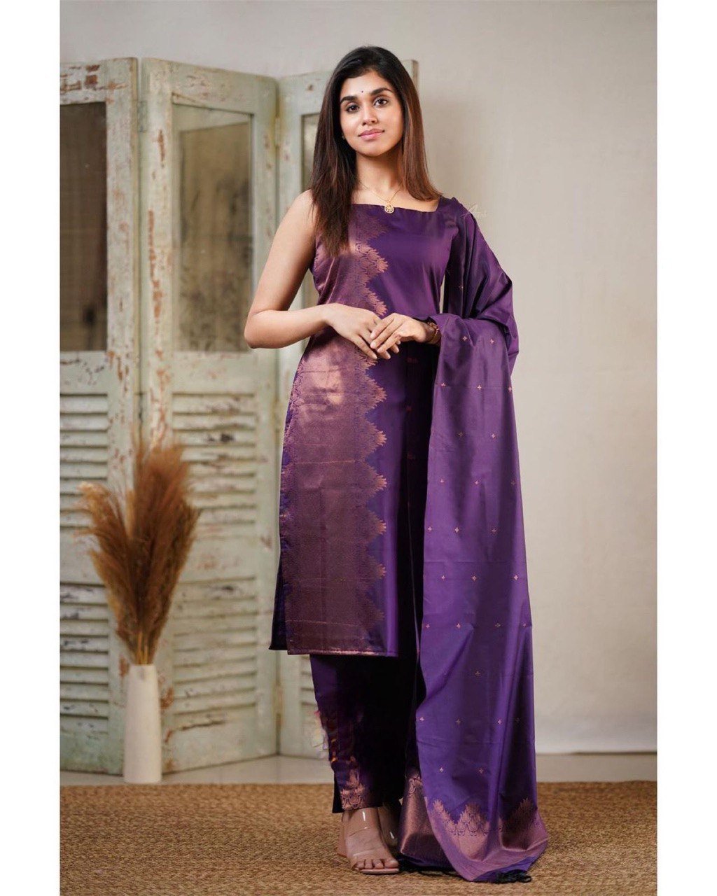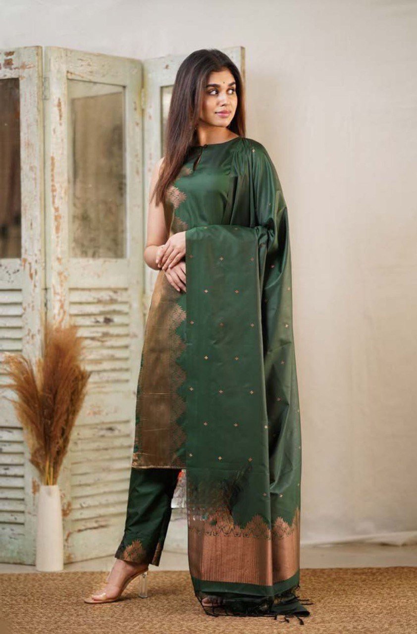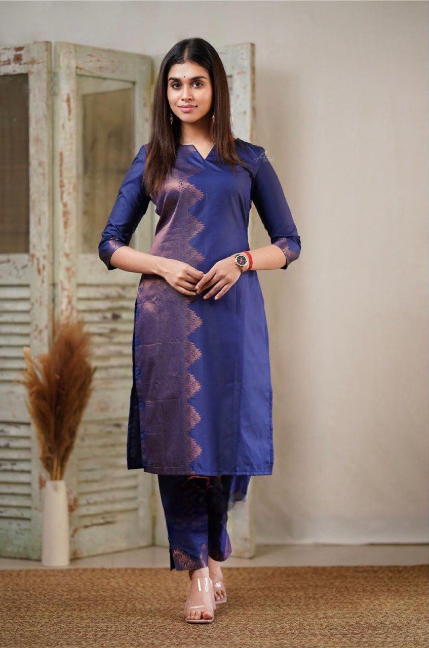 • Premium Quality :Banarasi Silk With Copper Zari Kurta Pant Dupatta Set
